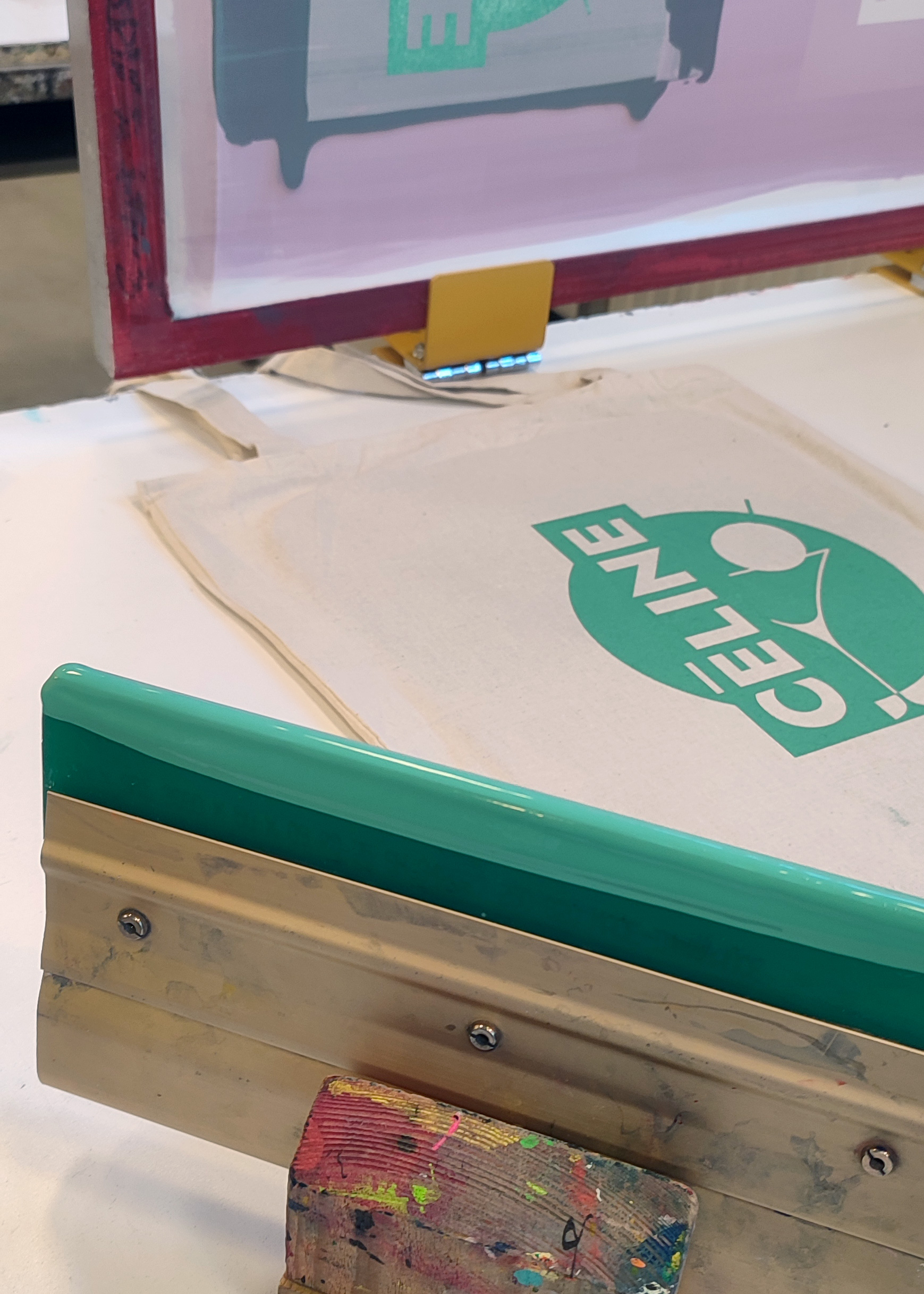 L’impression en sérigraphie des 15 sacs a été faite à la main en 2 couches.